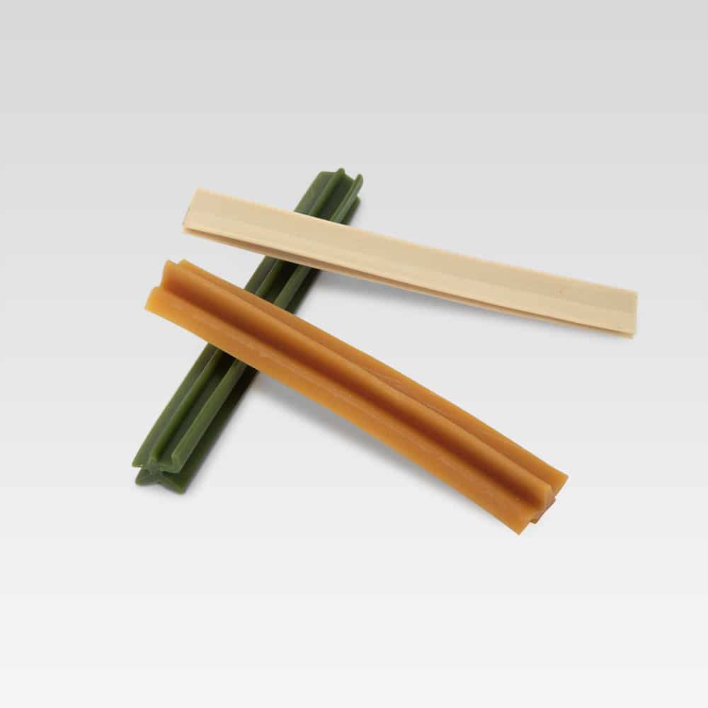 Die grünen Minze-Stangen führen dem Hund Magnesium und Eisen zu, die weissen Kalzium-Stangen liefern Mineralien für starke Knochen, die braunen Natural-Stangen sind einfach ein leckerer Snack für zwischendurch.