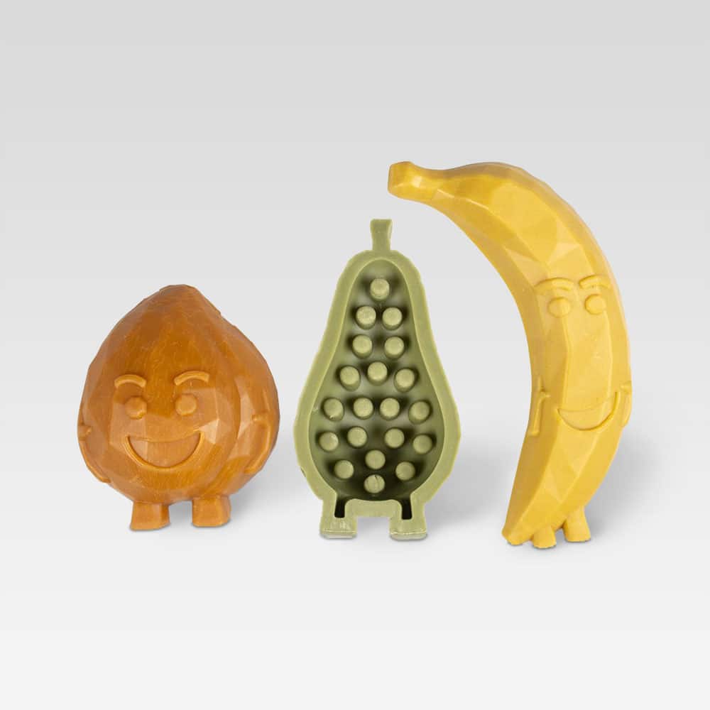 Früchtegesichter als Kausnack in 2 Grössen und 3 Farben