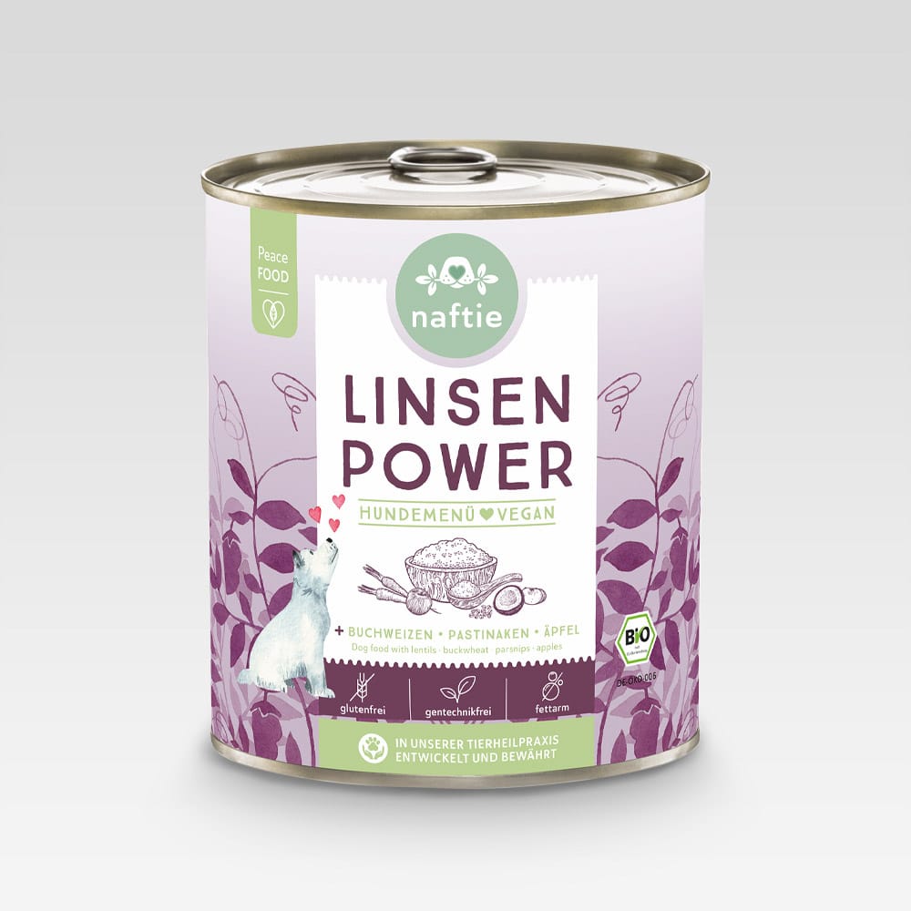 Leckeres vitalstoffreiches Menü mit roten Linsen, Buchweizen, Obst & Gemüsesorten kombiniert mit rein natürlichen Zusätzen wie Bio-Kokosöl, Algenkalk (für Gelenke & Knochen) und Spirulina für eine gute Versorgung Deines Hundes mit wertvollen Mineralien & Nährstoffen. Linsen Power eignet sich als Basisfutter ideal für Tierhalter, die ihren Hund vegan ernähren, für gelegentliche fleischfreie Mahlzeiten oder um den pflanzlichen Anteil mit anderen Komponenten zu kombinieren. Unser Bio Linsenmenü unterstützt sogar bei ernährungsbedingt sensiblen Hunden, durch tierisches Protein ausgelösten Allergien, Diäten oder die purinarme Ernährung.