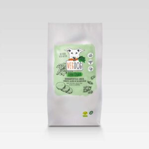 VegDog Senior No1 ist ein 100 % pflanzliches und bedarfsdeckendes Alleinfutter ohne Getreide und Soja. Es ist optimal den Bedürfnissen älterer Hunde ab 7 Jahren angepasst, die aufgrund ihres fortgeschrittenen Alters einen erniedrigten Energie- und erhöhten Nährstoffbedarf besitzen. Auch übergewichtige Hunde können von diesem Futter profitieren. Die Produkte stammen aus regionalem Anbau (Deutschland und Österreich).