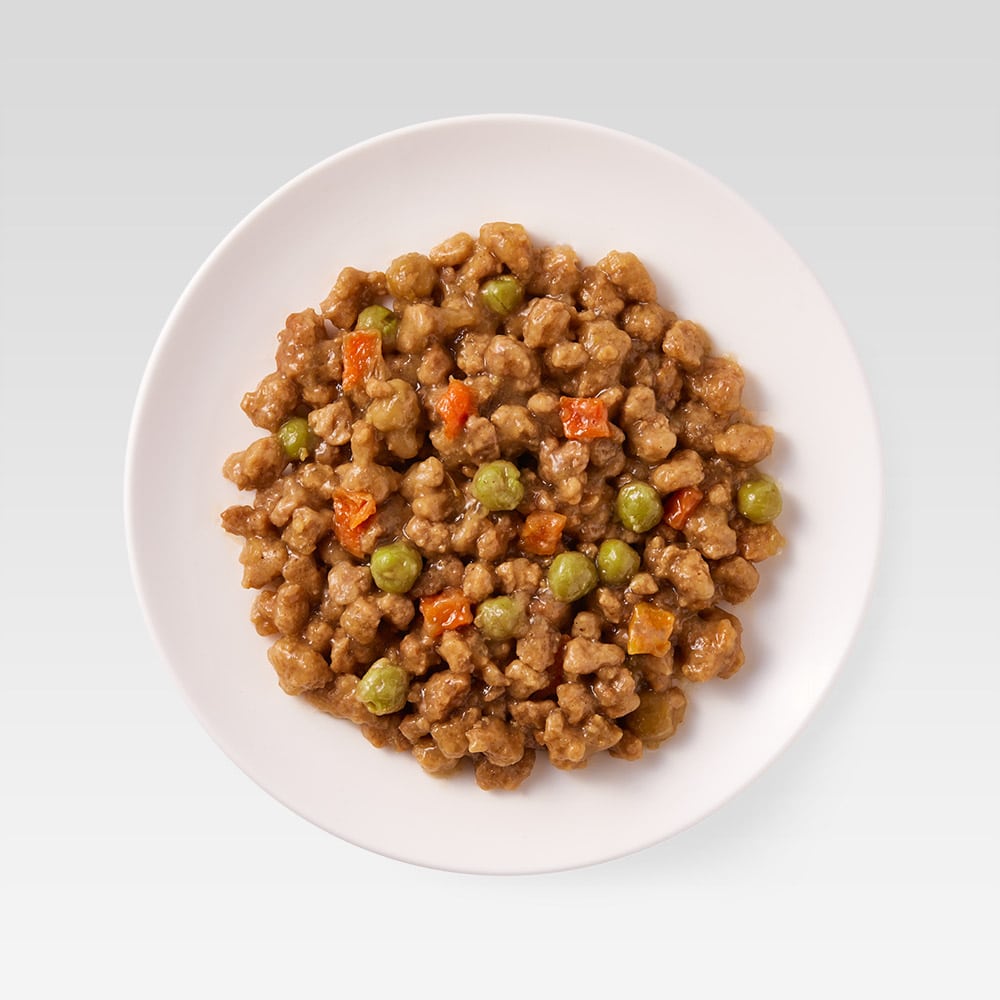 Geschmackvolle vegetarische Bröckchen aus Sojabohnen mit biologischen Erbsen, Möhren und Hagebutten. Sehr zu empfehlen für Hunde, die tierische Eiweisse nur schwer verdauen können oder für Herrchen/Frauchen, die ihrem Hund weniger oder gar kein Fleisch geben möchten. Für Hunde ab 1 Jahr geeignet. Eine vollwertige, nährstoffreiche und sehr schmackhafte fleischlose Mahlzeit für deinen Hund. Rein natürliches Futter – ohne künstliche Zusatzstoffe, Pestizide und GVO. Bei der Herstellung werden mit grösster Sorgfalt nur die am leichtesten verdaulichen pflanzlichen Eiweisse verwendet, um sicherzustellen, dass dein Hund genau das bekommt, was er braucht.